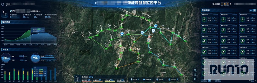 1. 实时监控与可视化场站级总览:全场装机容量、实时功率、可利用率一屏展示。